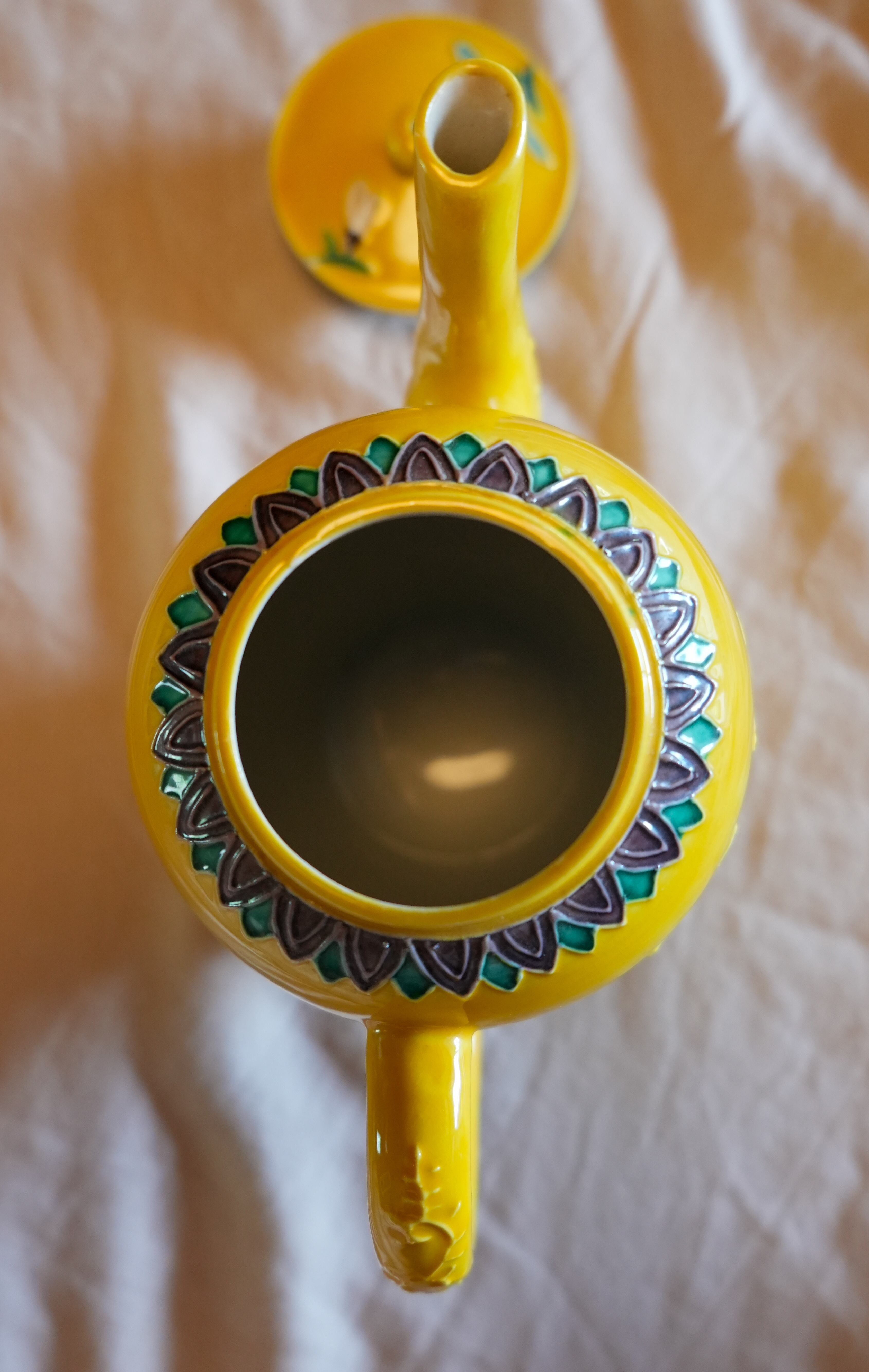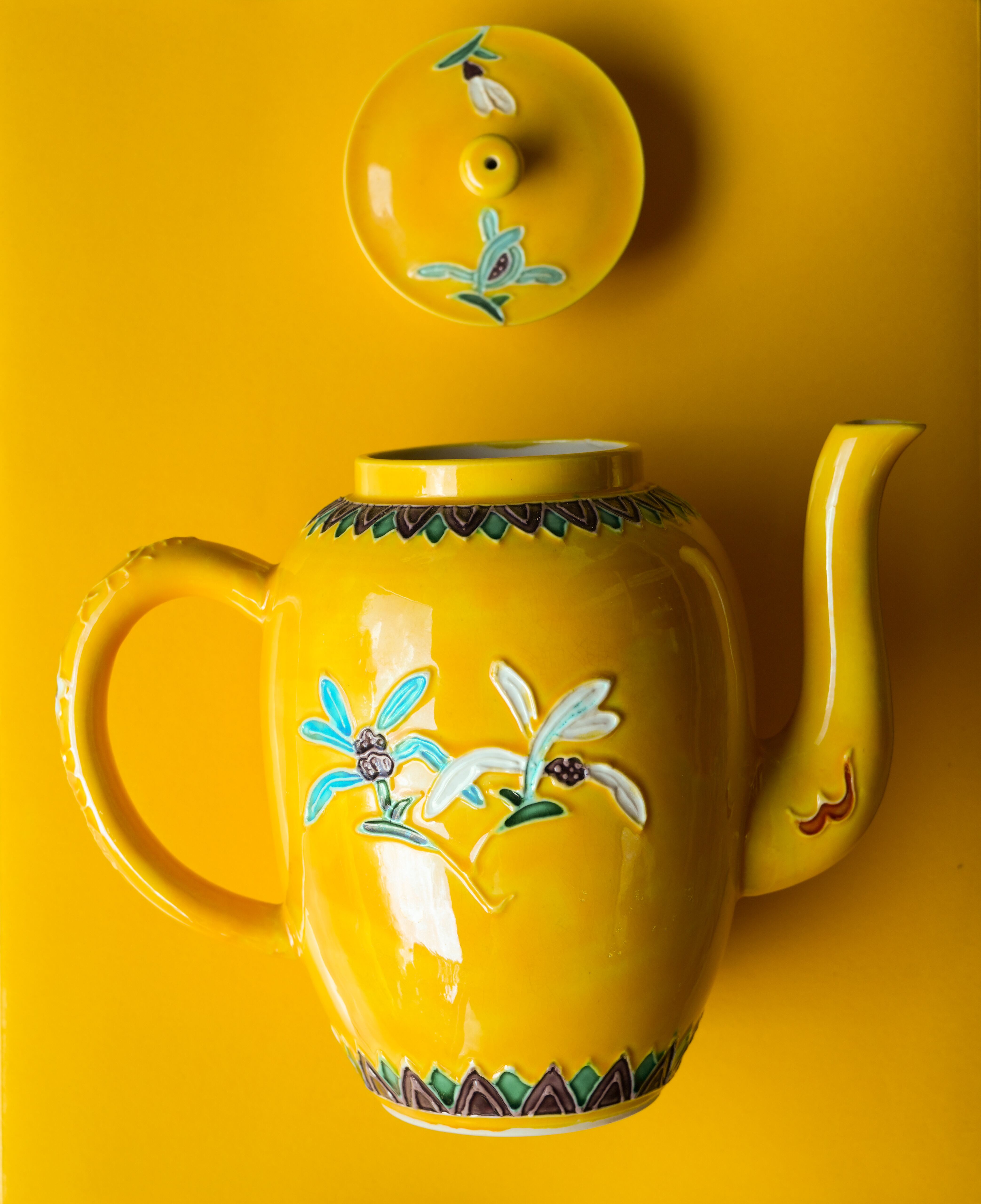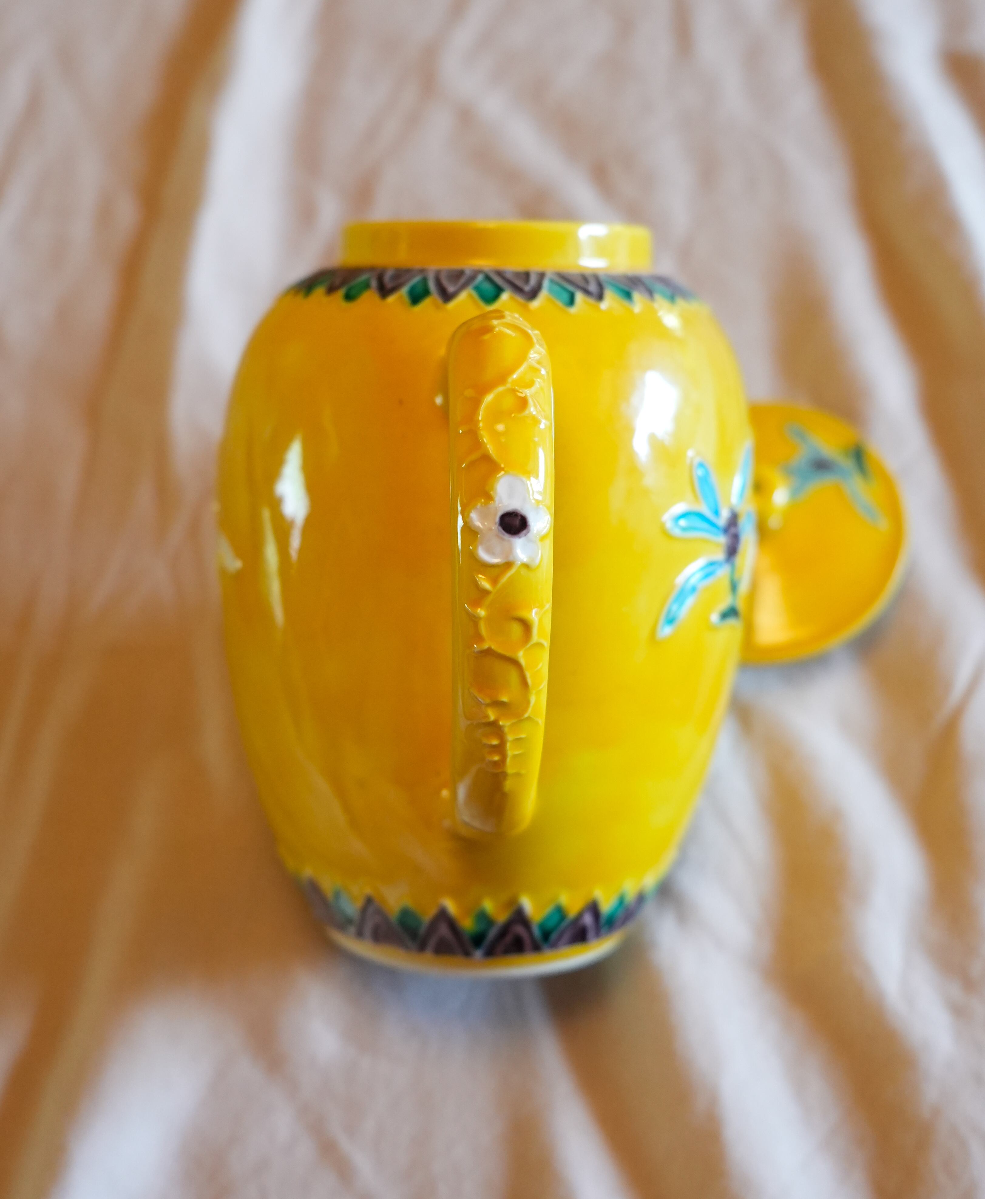 長期間手付かずであった押入れの中には、亡くなった祖母が習っていた茶道の道具が多くしまわれていた。多くは"The 茶道"と言った茶碗、茶入などだったが、箱の一つを開けるとそのイメージとは少し違ったポットが出てきた。それが、ビビッドな黄色が目を惹くこの平安白鳳。祖母が使っているところは見たことがなかったように思う。実際のところ使用感もあまりない。